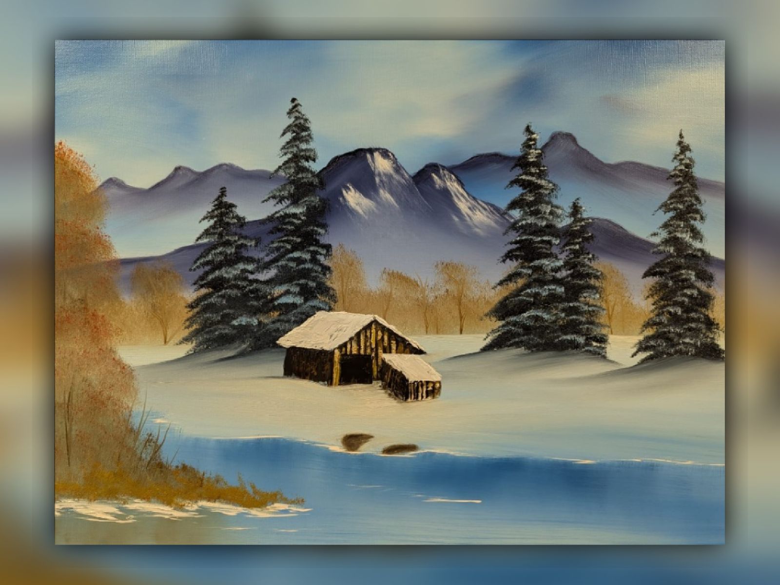 Viel zu lernen, zu staunen und sich zu freuen. Ich zeige dir Schritt für Schritt, wie du deine eigene kleine Winterwelt malst: die Berge, das Wasser, die Bäume, den Schnee – und all die anderen wunderbaren „Bob Ross®“-Elemente.