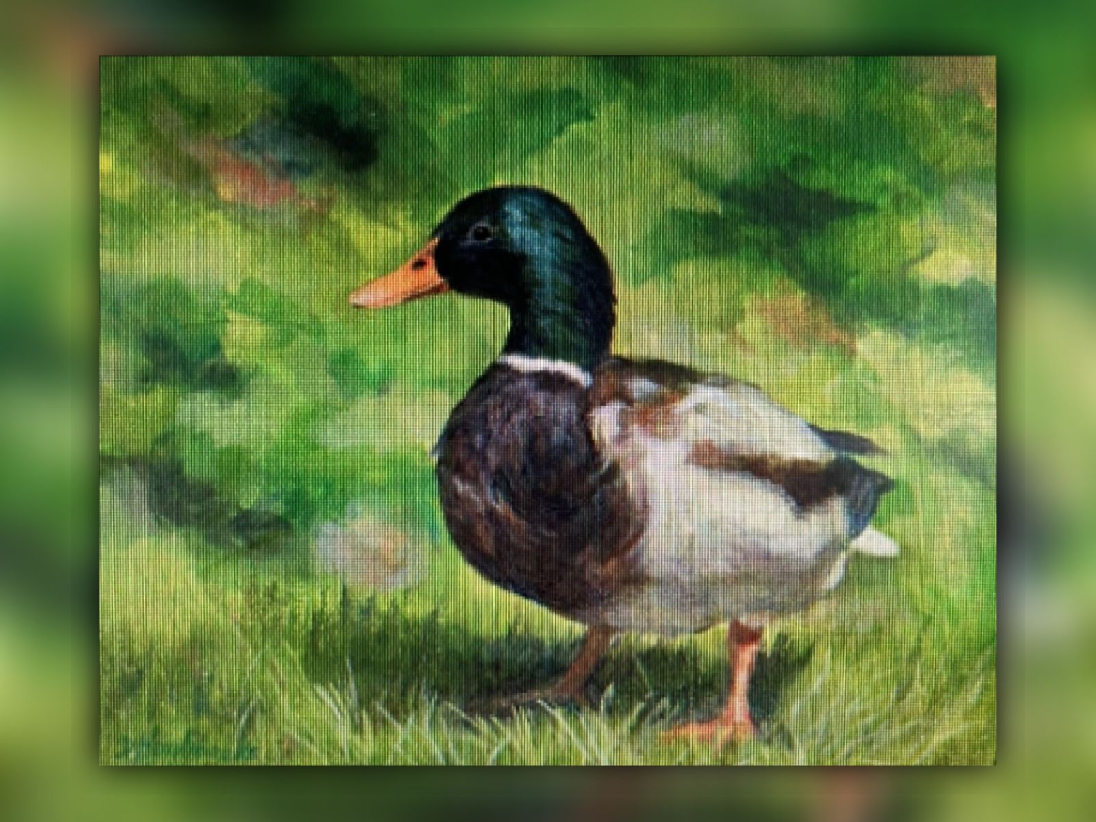 Wir beginnen mit dem Hintergrund und setzen zuerst Licht und Tiefe ins Gras, bevor wir uns Schritt für Schritt dem Körper, dem Gefieder und den feinen Farbnuancen des Kopfes widmen. Die Form der Ente wird vorgezeichnet, sodass du dich ganz auf das Malen konzentrieren kannst.